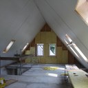 De begane grond is nog steeds niet geïsoleerd. De aannemer wil natuurlijk verder dus we zijn begonnen met de eerste isolatieplaatjes aan te brengen.
