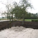 Nadat we erachter waren gekomen dat we met het maaien van ons weitje ongeveer 2 dagen zoet waren hebben we besloten het gras te vernieuwen. De grasmat bestond uit tien centimeter mos; kalk strooien hielp wel maar toen bleek er na verticuteren niets meer over te blijven. Omdat we ook niet helemaal tevreden waren over de heg moest deze er ook aan geloven.