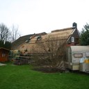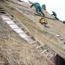 Woensdag 10 januari is rietdekker Wim Eggens begonnen met het vervangen van de westelijke kap. Update.. 31 januari is de achterzijde klaar.