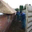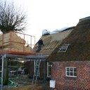 Woensdag 10 januari is rietdekker Wim Eggens begonnen met het vervangen van de westelijke kap. Update.. 31 januari is de achterzijde klaar.